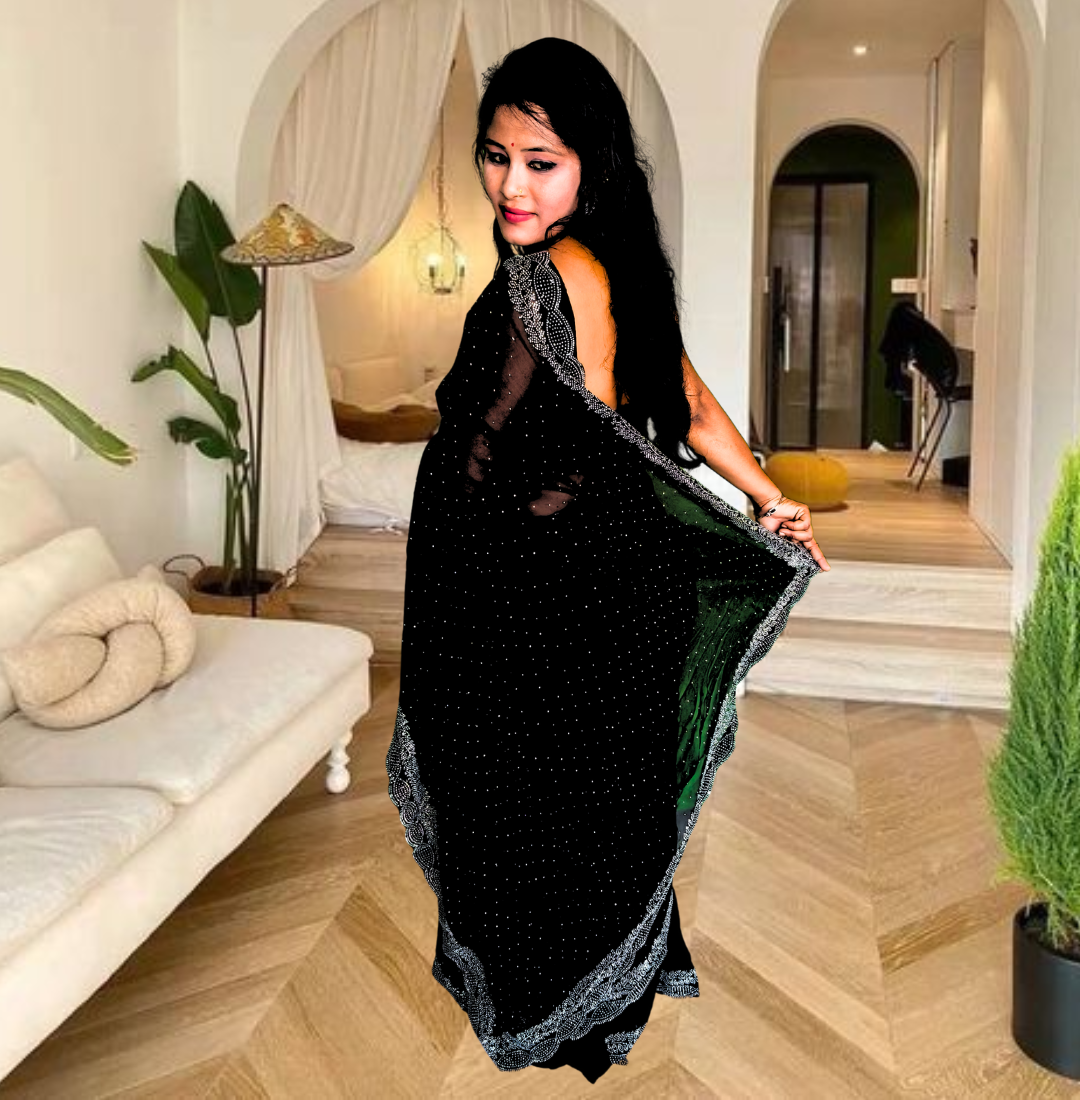 S4s Black Karishma Siroski Stones Lace Georgette Party Wear Saree